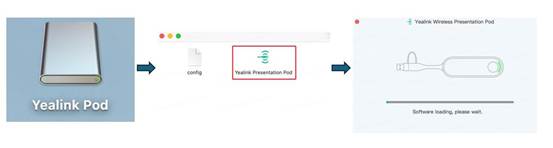 - After upgrading, plug the WPP30 into the MacBook, manually enter the drive named “Yealink Pod”, and open the software named “Yealink Presentation Pod.”