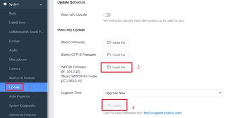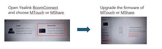- Login to the Windows Administrator account of MVC via MTouch and use the "Yealink RoomConnect" software to upgrade the MTouch E2/MTouch Plus/MShare E2 firmware manually.